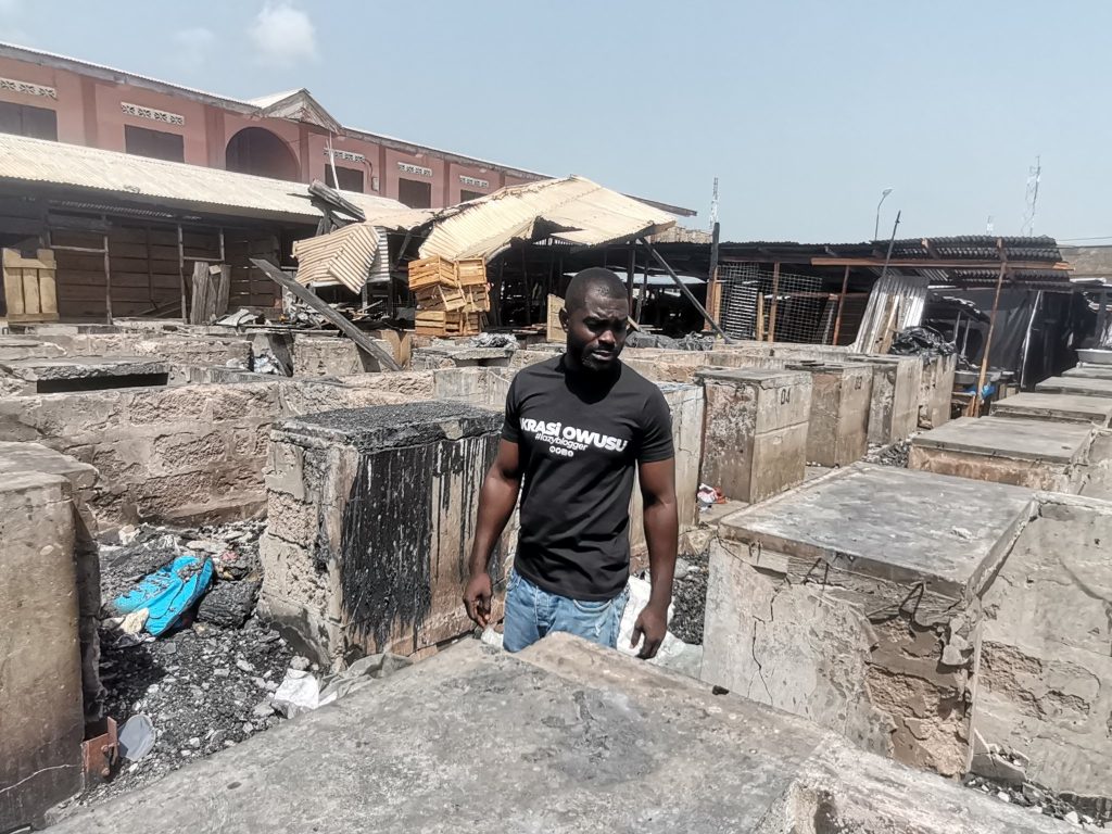A week ago today, a devastating fire engulfed a part of Atebubu Market around 3am, resulting in the destruction of about 100 stores belonging to market women and other properties. The cause of the fire outbreak is still unknown, but there are rumors that leftover pieces of fire may have been the trigger for the destruction.