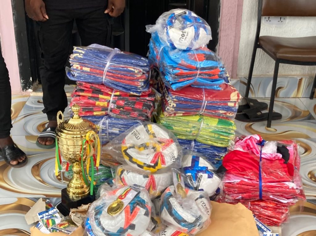 The MP, Hon Sanja Nanja made a presentation and was received by the Municipal Physical Education Coordinator, Nana Konadu Maxwell, and the organizational committee at the MP’s premises on September 16, 2025. The items included 12 sets of jerseys, 10 footballs, medals (gold, silver, and bronze), a trophy, and an undisclosed amount of money to finance the tournament.